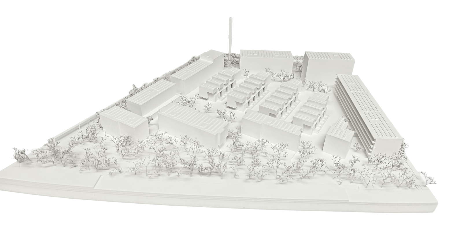 Unser Beitrag übernimmt die verschiedenen vorhandenen Geometrien, akzeptiert die vorgängig gemachten Planungen und verbindet die unmittelbaren Nachbarschaften. Obwohl es sich um eine städtebaulichen Studienauftrag handelt, können wir es nicht lassen, mit grosser Freude räumlich interessante Wohnungen zu entwerfen.